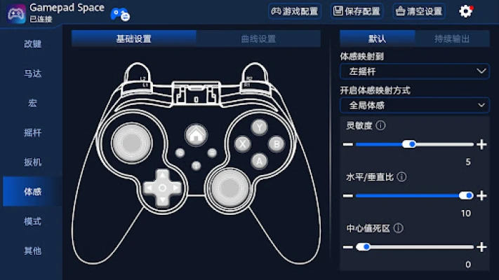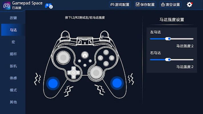 Gamepad Space是一款经过私有协议连接后可以自定义蓝牙手柄按键映射、按键连击、马达属性、按键宏、扳机按键死区、摇杆死区和摇杆映射等功能设置的的工具APP。通过修改自定义按键映射、按键连击、马达属性、按键宏、扳机按键死区、摇杆死区和摇杆映射等,使得键位适合玩家自己的操作习惯或匹配玩家想玩的游戏。