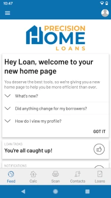 • Easily access contact information for your Precision Home Loans Loan Officer and real estate agent and share with friends/family