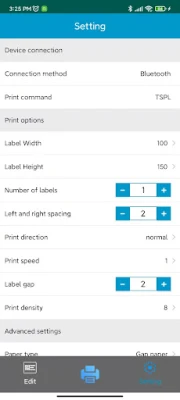The application is used to print labels. The mobile phone connects the printer device through Bluetooth or USB. Edit the content you want to print on the mobile phone, click the print button, and send data to the printer