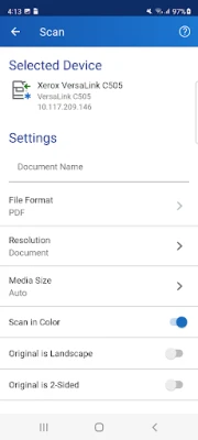 -Scan documents from your MFP wirelessly from within the app